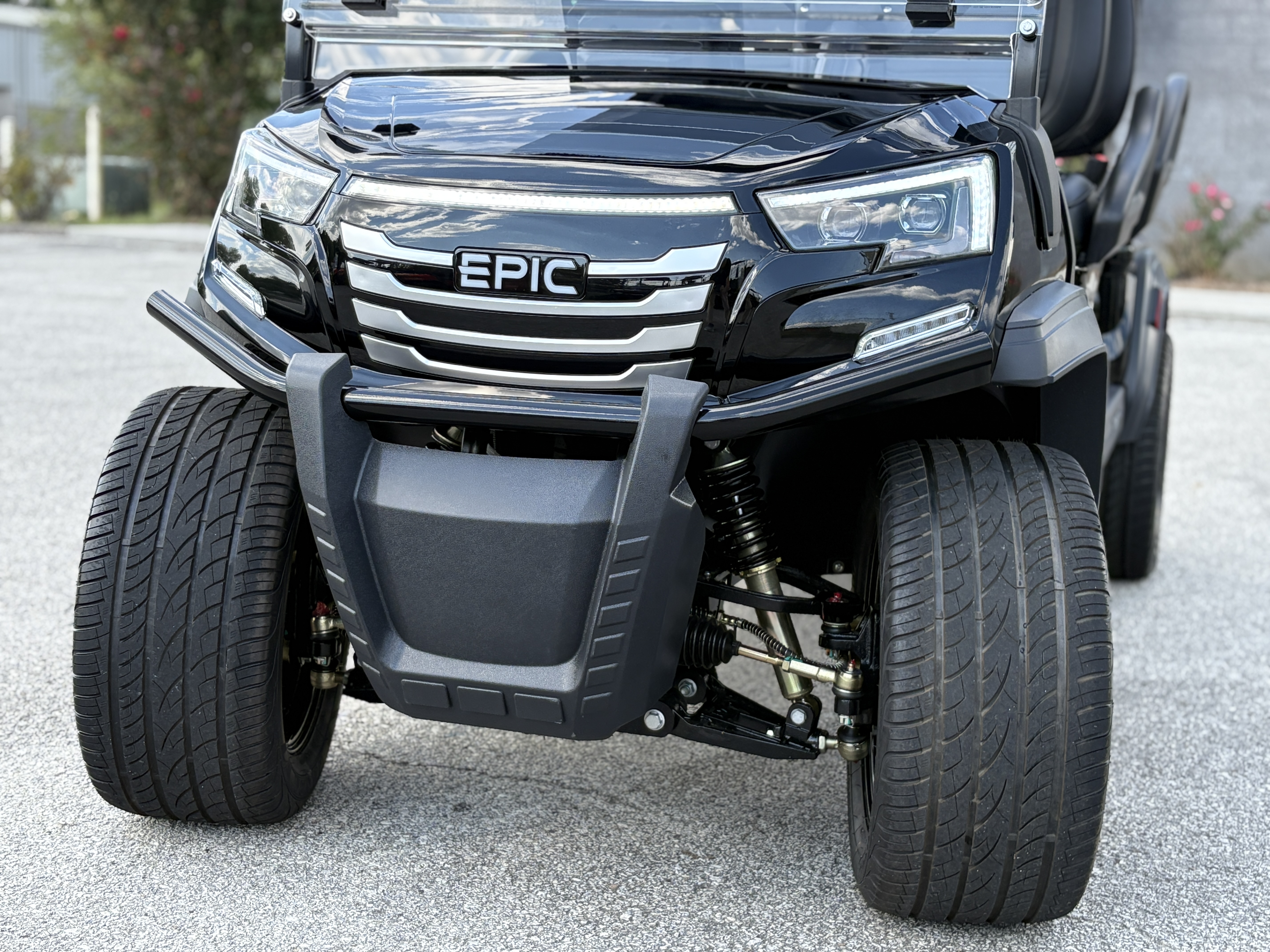 The brand new Epic E40FX is the best golf cart on the market today! Furnished with every imaginable feature, the forward-facing four-seater Epic E40FX comes in six stylish colors and two height options. Premium 14” wheels and street-ready tires provide a solid foundation for every journey on every terrain, no matter what lift height is selected. With an abundance of storage, superior built-in marine-grade sound system and speakers, and stunning accent lighting, this Epic E40FX golf cart illuminates the possibilities for fun and adventure.