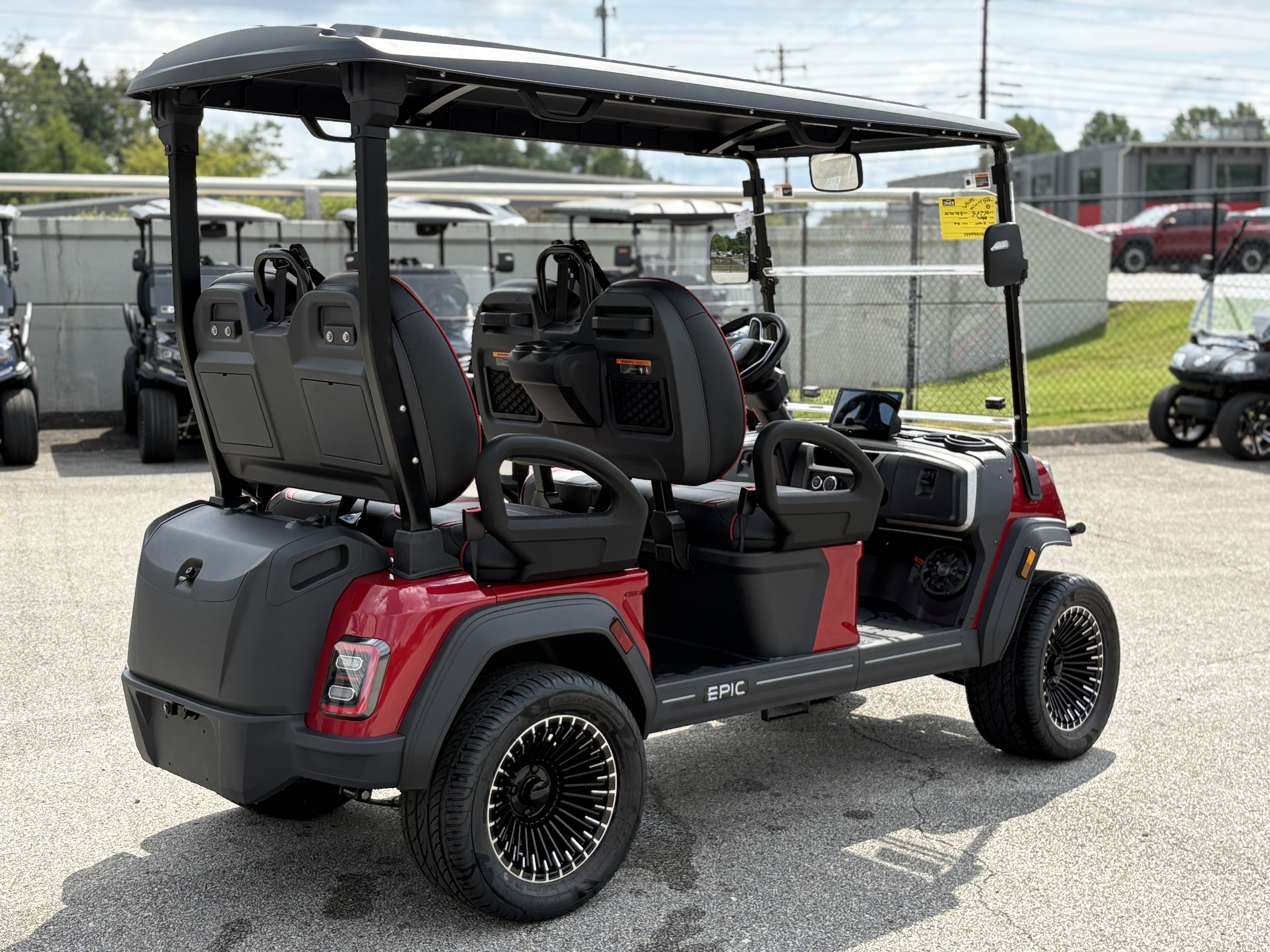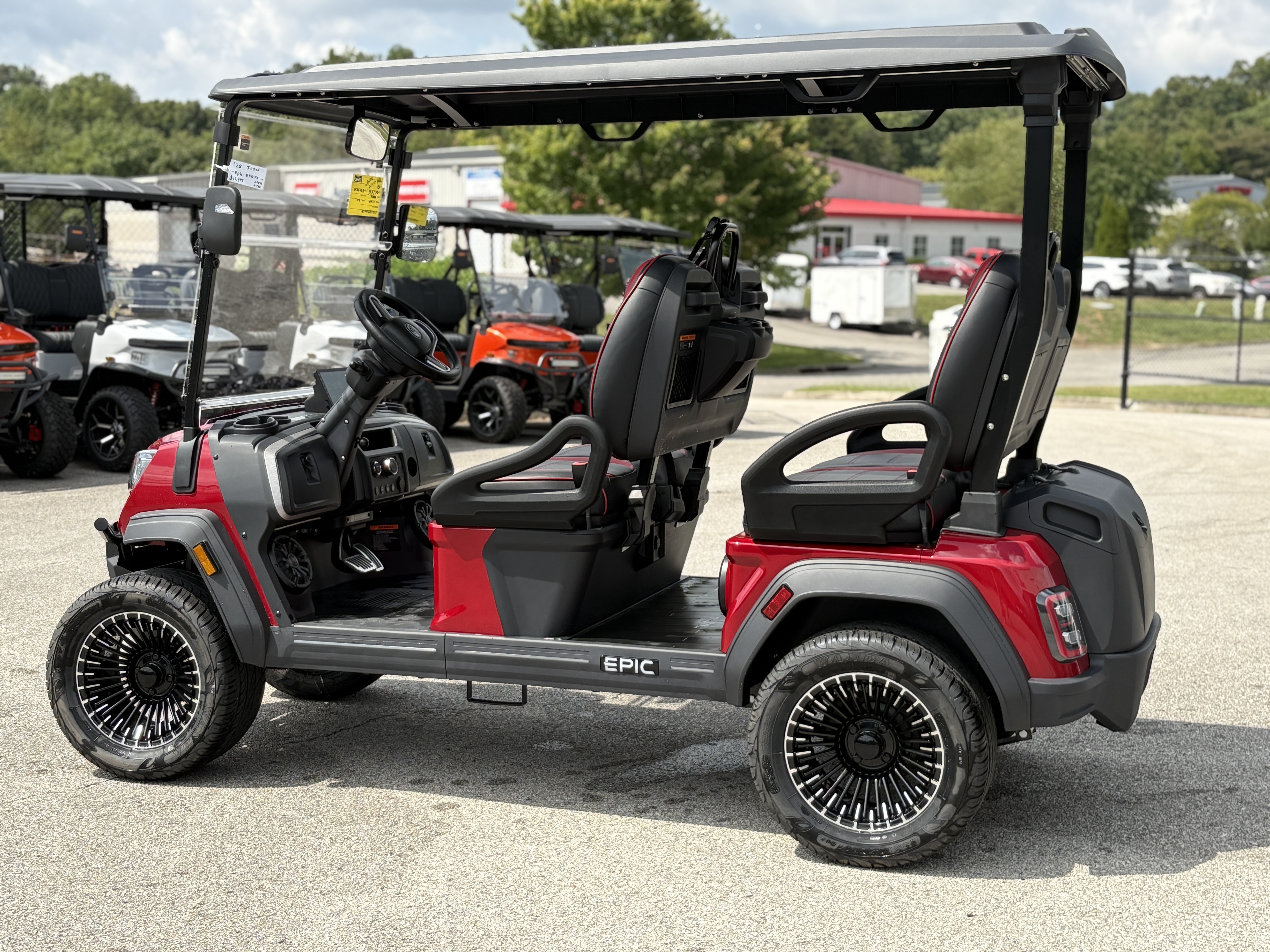 The brand new Epic E40FX is the best golf cart on the market today! Furnished with every imaginable feature, the forward-facing four-seater Epic E40FX comes in six stylish colors and two height options. Premium 14” wheels and street-ready tires provide a solid foundation for every journey on every terrain, no matter what lift height is selected. With an abundance of storage, superior built-in marine-grade sound system and speakers, and stunning accent lighting, this Epic E40FX golf cart illuminates the possibilities for fun and adventure.